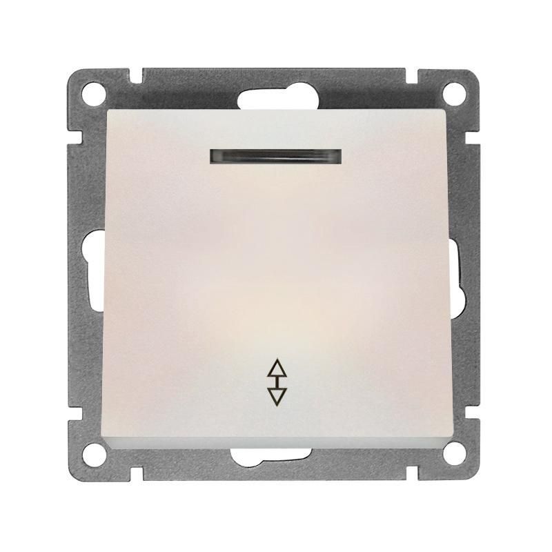 Переключатель проходной 1-кл. СП Афина 10А IP20 с подсветкой механизм жемчуж. Universal A0125-OBr Союз