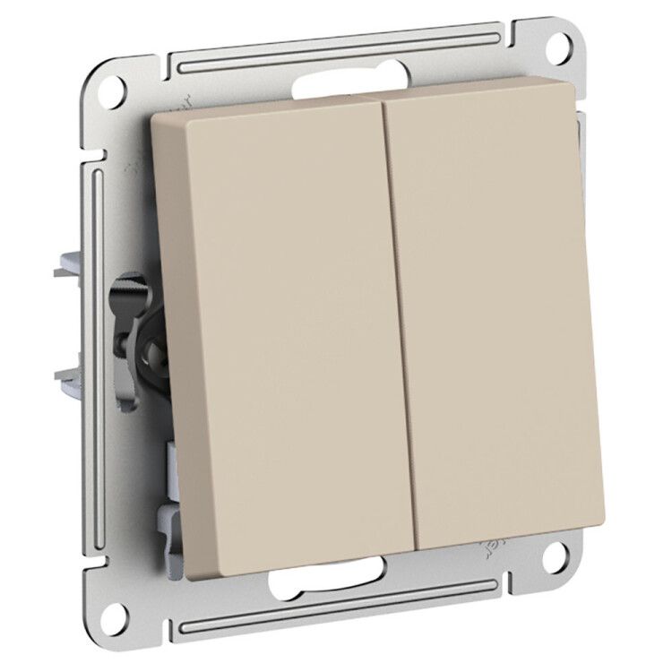 Механизм SE atn001265 совместим с монтажными коробками стандарта 68×68 мм и глубиной не менее 40 мм. Для работы требуется второй такой же проходной переключатель (не обычный одноклавишный) и перемычка между ними. Каждая клавиша управляет своей цепью - можно включать/выключать два разных светильника с двух точек. Винтовые клеммы принимают медные жилы сечением до 2,5 мм2. Не используйте многожильные провода без наконечников - они могут деформироваться при затяжке. Лапки механизма усилены, что снижает риск расшатывания после длительной эксплуатации.