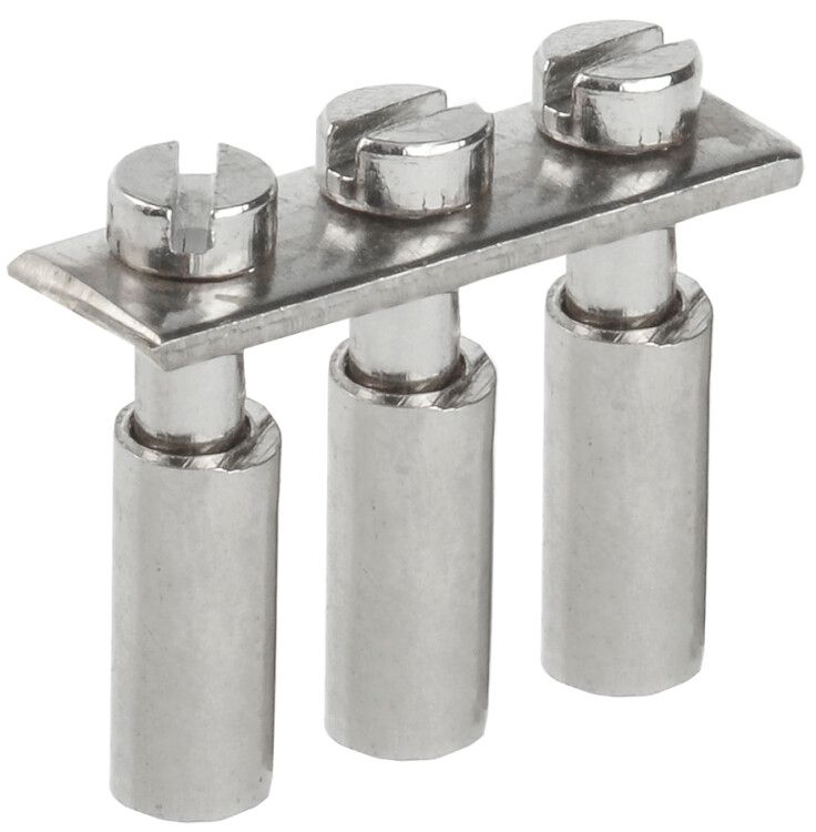Перемычка центральная для кабеля сечением 2,5 мм2 3-контактная совместима исключительно с клеммными сборками винтового типа, имеющими стандартизированные пазы для установки гребёнок (например, серия КВИ). Для монтажа необходимо: