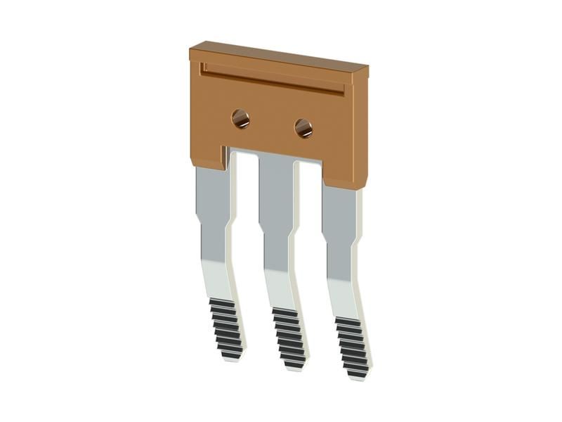 Перемычка используется для создания электрической связи между тремя последовательными клеммами на клеммных колодках AVK2.5 и AVK2.5RD. Применяется там, где требуется равномерное распределение фазного напряжения или заземления между несколькими устройствами - например, при подключении нескольких автоматических выключателей, УЗО или контакторов в одном ряду.