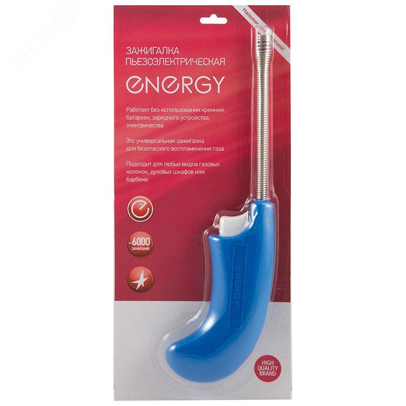 Универсальная зажигалка для безопасного воспламенения газа, Работает без использования, батареек и зарядного устройства, Подходит для любых видов газовых колонок, духовых шкафов или барбекю, Упаковка - блистер