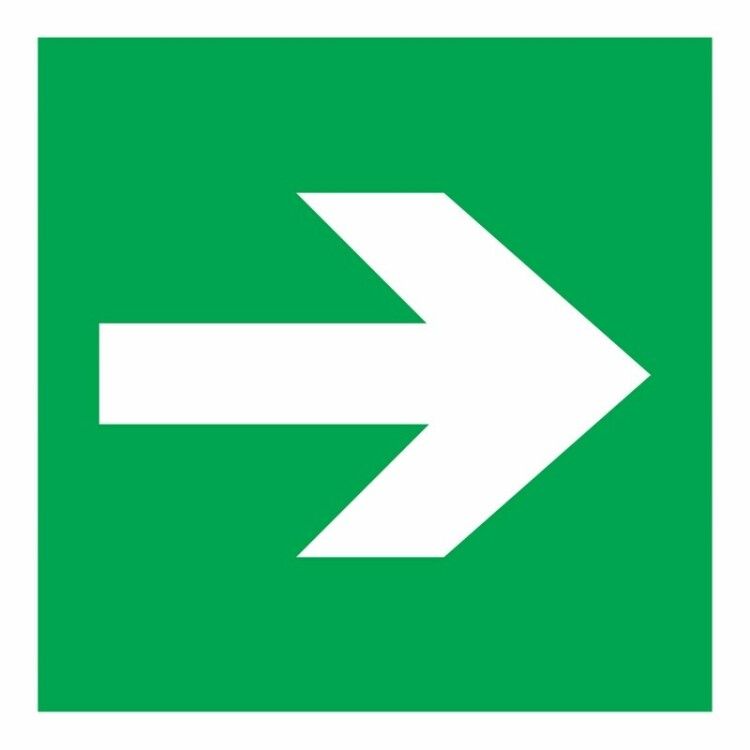 Наклейка эвакуационный знак Направляющая стрелка 100х100 мм служит для визуального обозначения направления движения к эвакуационному выходу. Устанавливается на стенах, дверях, ограждениях и других вертикальных поверхностях. Используется как самостоятельный элемент или в сочетании с другими знаками безопасности - например, с символом «Выход» или «Эвакуация». Обязателен к установке в соответствии с требованиями нормативов по пожарной безопасности в офисах, школах, больницах, торговых центрах, производственных помещениях и транспортных узлах.
