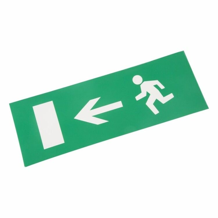 Наклейка для аварийного светильника 'ВЫХОД ВЛЕВО' совместима исключительно с прозрачными моделями аварийных светильников, например, с артикулом 74-1310. Монтаж выполняется на чистую, сухую и обезжиренную поверхность. Не требует инструментов - достаточно снять защитную плёнку и плотно прижать наклейку. Клеевой слой рассчитан на длительное использование внутри помещений. Не рекомендуется применять на шершавых, влажных или маслянистых поверхностях.