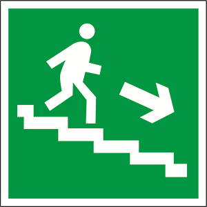 Пиктограмма используется для визуального ориентирования людей во время эвакуации в помещениях с повышенными требованиями к безопасному выходу. Указывает на необходимое направление движения - вниз по лестнице справа. Подходит для установки в местах массового скопления людей: офисы, торговые центры, больницы, школы, метро, жилые многоквартирные дома. Работает исключительно в системах аварийного освещения, где активируется внешним источником света (например, люминесцентным или светодиодным).