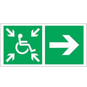 - При замене старых знаков убедитесь, что новый экземпляр "Направление движения к пункту сбора (безопасной зоне) МГН направо" от Белый свет имеет тот же формат и цветовое оформление