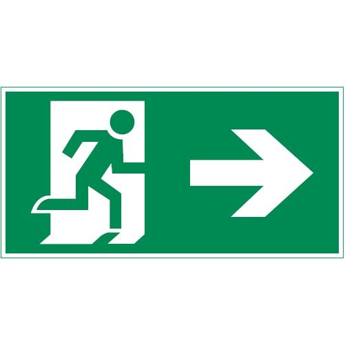 - Цветовая схема: белая фигура человека со стрелкой на фоне красного поля - соответствует ГОСТ Р 12.4.026 и требованиям к эвакуационным знакам;