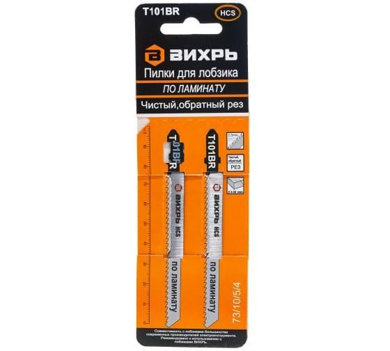 Пилки для лобзика Т101ВR по ламинату,чистый,обратный рез 100х75мм (2шт) | 73/10/5/4 ВИХРЬ