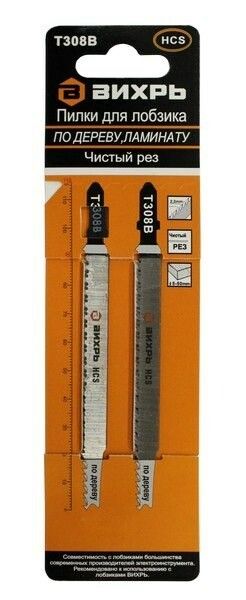 Пилки для лобзика Т308В по дереву,ламинату,чистый рез 116x90мм (2 шт) | 73/10/5/10 ВИХРЬ