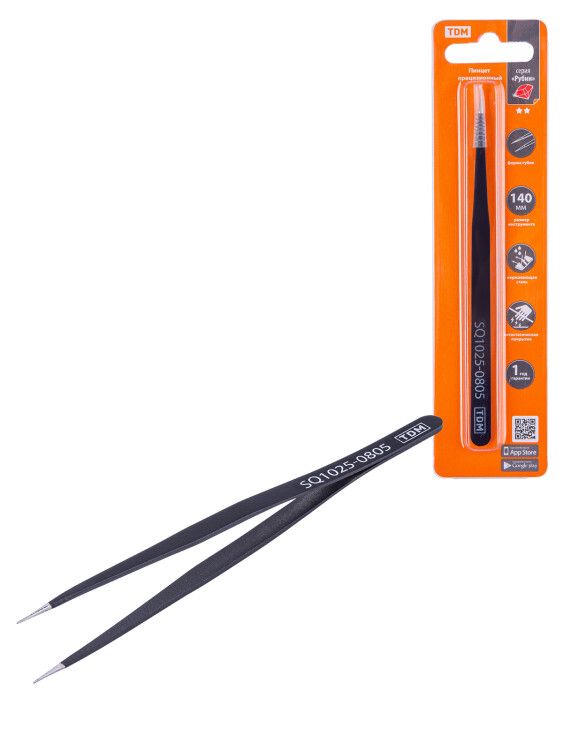 Пинцет прецизионный прямой 140 мм "Рубин" SQ1025-0805 TDM ELECTRIC - незаменимый инструмент для работы с маленькими предметами, которые нельзя брать незащищенными руками. Он идеально подходит для моделирования, робототехники, декоративно-прикладных работ, ремонтных работ (пайка, склеивание), ювелирного дела, сборочного производства и филателии.