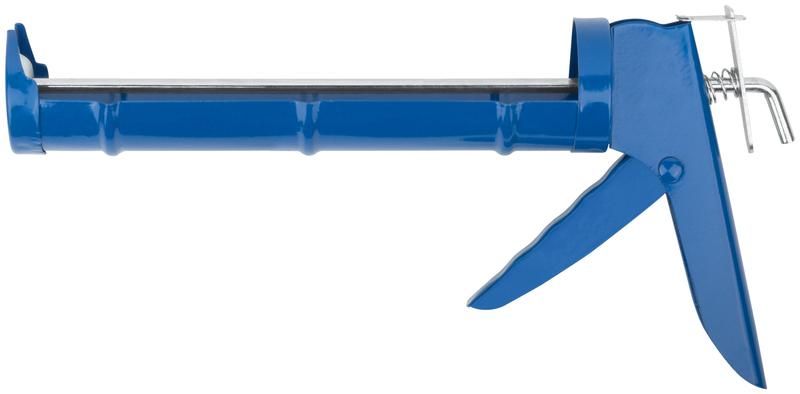 Пистолет для герметика 225 мм полукорпусной, гладкий шток - 14209 FIT является надежным инструментом для выдавливания герметика из стандартных емкостей объемом 310 мл. Он изготовлен из высококачественной инструментальной стали, что обеспечивает долгий срок службы и прочность.