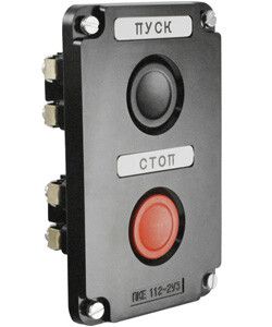 Пост управления ПКЕ 122-2 У2 предназначен для ручного управления электрическими цепями: запуска, остановки, изменения режима работы оборудования. Применяется там, где требуется надежный и защищённый способ ввода команд - например, на станках, конвейерах, насосных станциях, системах вентиляции. Красная кнопка обычно служит для аварийной остановки, черная - для пуска. Оба элемента работают в паре: один нормально разомкнутый, другой - нормально замкнутый.
