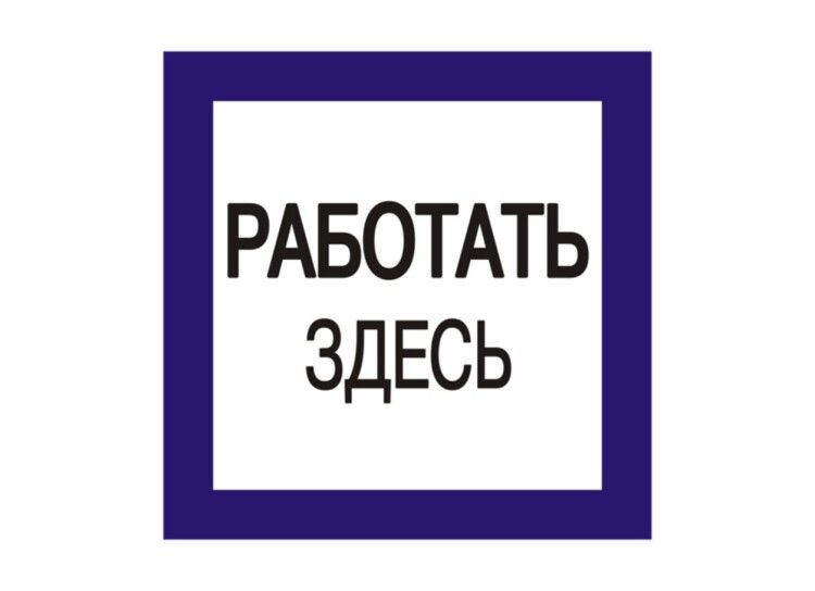 - Приклейте Plakat 150x150 мм 'Работать здесь' в хорошо освещённом месте - так информация будет лучше заметна