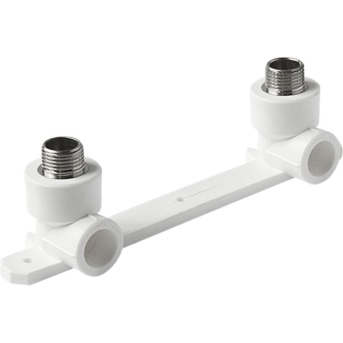 Планка монтажная с водорозетками полипропиленовая 20x1/2 дюйма для смесителя белая совместима с любыми трубами из PP-R диаметром 20 мм. Для монтажа требуется: