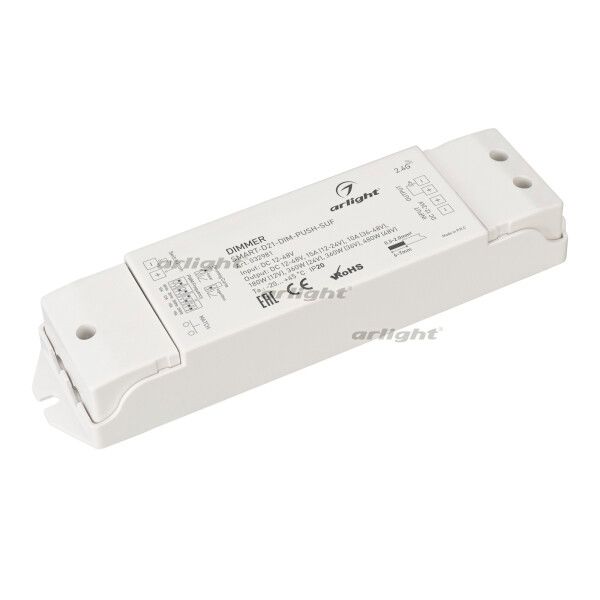 - SMART-D21-DIM-PUSH-SUF (12-48В, 1x15А, 2.4G) IP20 пластик - идеальный выбор, если вам нужны простота, надёжность и удалённое управление без сложной системы