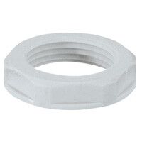 Пластиковая гайка для уплотнительного кабельного ввода PG 21 RAL 7035 IP 55 совместима только с сальниками PG 21, имеющими внешнюю резьбу того же стандарта. Устанавливается на резьбовую часть сальника после его введения в отверстие корпуса. Для герметичности необходимо затянуть гайку рукой до упора, затем довернуть ключом на ¼–½ оборота - перетягивание может повредить резьбу или корпус. Подходит для установки в металлические и пластиковые щиты с отверстием Ø 21 мм по стандарту PG.