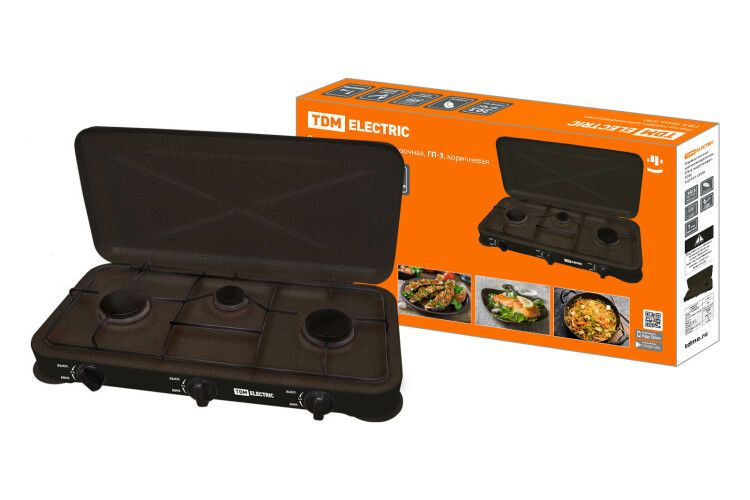 Плитка газовая трёхконфорочная ГП-3 коричневая SQ2515-0009 TDM ELECTRIC - это отличное решение для оснащения вашей кухни. Она идеально подойдет как основная или дополнительная плита в загородном доме, квартире или на даче.