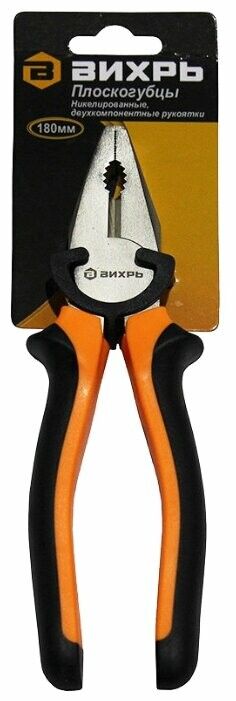 Плоскогубцы 180 мм никелированные с двухкомпонентными рукоятками ВИХРЬ применяются в электромонтаже, обслуживании оборудования и ремонте бытовой и промышленной техники. Подходят для: