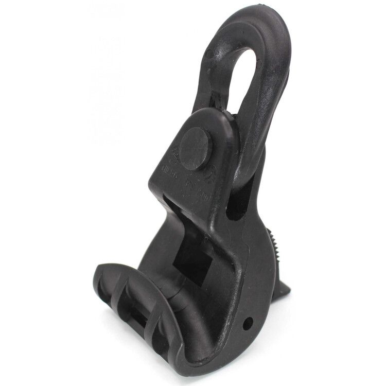 Зажим подвесной и поддерживающий PS 1500 (16-95 мм2, 12 кН) выполнен из диэлектрического материала - полностью изолирует несущую жилу от металлических элементов крепления. Это снижает риск пробоя и замыканий. Конструкция соответствует требованиям ГОСТ 31943-2012 и IEC 61284 для подвесных зажимов. Устройство не содержит токопроводящих частей вне контактной зоны.