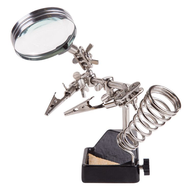 - Одна система заменяет три инструмента: зажим, лупу и подставку под паяльник;