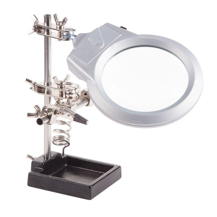 Держатель Третья рука с лупой х2.5 подставкой под паяльник и LED подсветкой - 12-0253 MEET