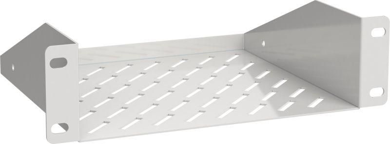 Полка rs35-200p-lws совместима исключительно со шкафами, оснащенными монтажными профилями стандарта 10 дюймов (254 мм между центрами отверстий). Устанавливается за счет двух выступов на задней части полки, которые вставляются в пазы профилей. Крепление происходит только на одну пару профилей - слева и справа, без поддержки сзади. Для устойчивости оборудование следует распределять равномерно по поверхности полки. Монтаж выполняется без инструментов: просто введите выступы в профиль и проверьте фиксацию.
