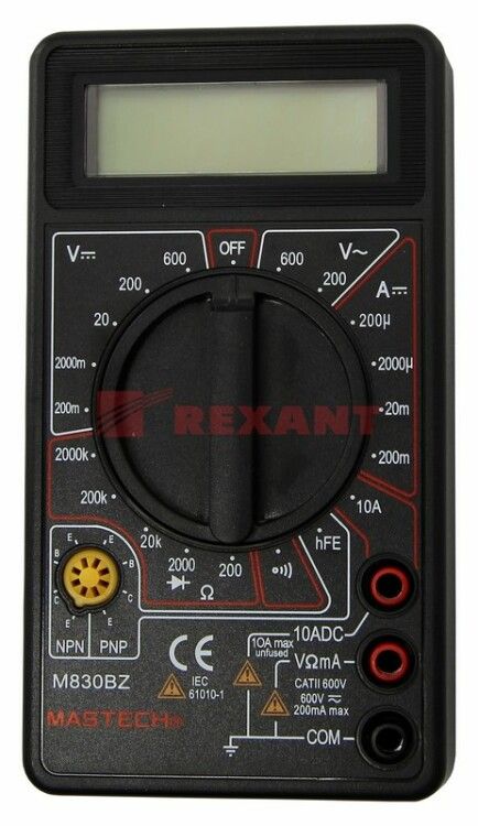Портативный мультиметр M830BZ - надёжный измерительный прибор от брендов REXANT, Mastech и SDS, предназначенный для точного замера напряжения, тока и сопротивления в бытовых и профессиональных условиях. Благодаря компактному корпусу и расширенному функционалу, M830BZ легко помещается в инструментальную сумку и подходит как для домашнего ремонта, так и для работы на объектах.