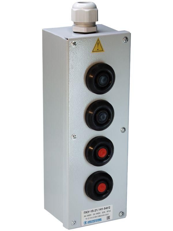 Пост управления ПКУ-15-21.141-54У2 от бренда Электротехник - компактный кнопочный пункт управления с четырьмя кнопками двух цветов, предназначенный для ручного управления электрическими цепями в промышленном оборудовании. Артикул ET054492 обеспечивает надежную коммутацию при напряжении до 440 В постоянного и 660 В переменного тока.