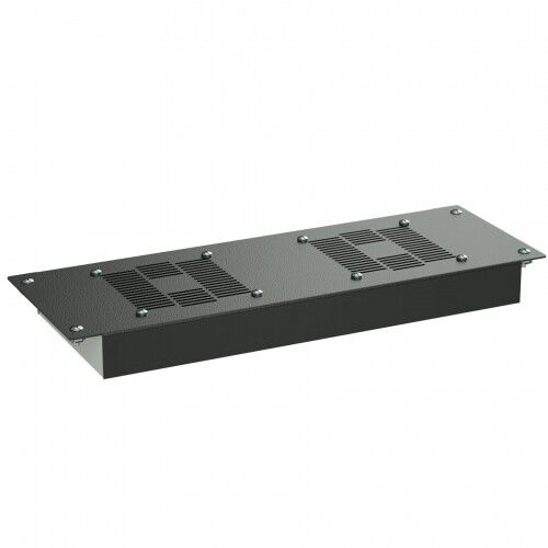 Потолочный модуль 2 вентиляторов для крыши и навесных/напольных 19" IT-корпусов шириной 600 мм, цвет RAL9005 устанавливается в верхнюю крышку 19"-шкафа для вытяжки нагретого воздуха. Подходит для IT-оборудования, которое генерирует значительное тепло - серверов, коммутаторов, UPS, сетевых стоек. Особенно эффективен в помещениях с ограниченным пространством для боковой вентиляции или при использовании закрытых коробов. Применяется в центрах обработки данных, телекоммуникационных узлах, офисных серверных и производственных автоматизированных системах.