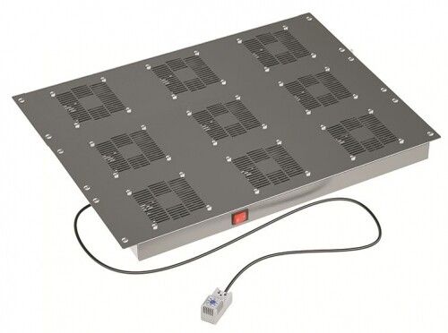 Модуль потолочный вентиляторный 9 вентиляторов с термостатом для крыши 800 RAL9005, серия CQE предназначен для установки в 19-дюймовые IT-шкафы шириной 800 мм. Его задача - выводить горячий воздух изнутри шкафа через кровлю, предотвращая перегрев оборудования. Подходит для центров обработки данных, телекоммуникационных помещений, систем управления и других мест, где требуется принудительная вытяжка тепла. Управление через термостат делает его идеальным решением для автономной работы без постоянного контроля.