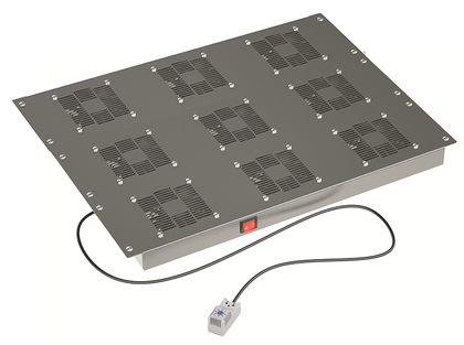 Модуль потолочный вентиляторный с термостатом DKC (Артикул r5vsit8009ft) - устройство для активного удаления тепла из IT-шкафов, устанавливаемых на кровлю. Приведённая модель серии CQE оснащена девятью крышными вентиляторами и автоматическим управлением через термостат.