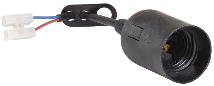 Патрон подвесной с шнуром, пластик, Е27, черный (50 шт), стикер на изделии, Ппл27-04-К52 имеет два вывода для подключения двухжильного гибкого провода (например, ПВС 2×1,0 или ШВВП). Монтаж выполняется путём зажима жил в клеммах внутри корпуса - без необходимости пайки. Установка возможна на потолочные или стеновые крепления через шнур, который можно регулировать по длине. Для замены лампы достаточно просто выкрутить её из цоколя - никаких инструментов не требуется.