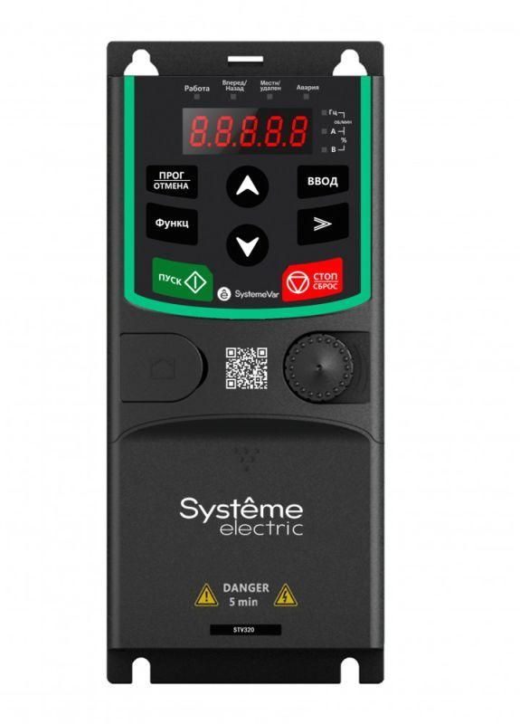 Преобразователь частоты STV320 2.2 кВт 220В от Systeme Electric - компактное устройство для регулирования скорости трёхфазных двигателей на базе однофазной сети 220–230 В. Артикул stv320su22m2 подходит для автоматизации малых станков, насосов и вентиляторов в условиях промзоны.