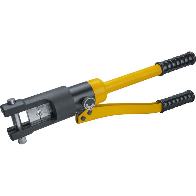 Гидравлический пресс Navigator 93 584 (артикул 93584) предназначен для опрессовки наконечников и соединителей на проводах сечением от 16 до 240 мм2. Устройство сочетает надёжную механическую конструкцию с высокой точностью давления, что делает его подходящим для профессионального монтажа в электроустановках.