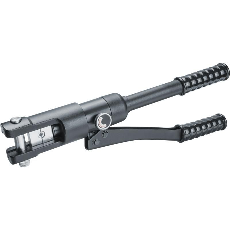 Устройство работает за счёт ручного насоса - не требует внешнего питания. Усилие развивается через гидроцилиндр, управляемый клапаном. Быстрое смыкание позволяет быстро опустить пуансон на заготовку до контакта, после чего система переключается на медленный, контролируемый ход под давлением.