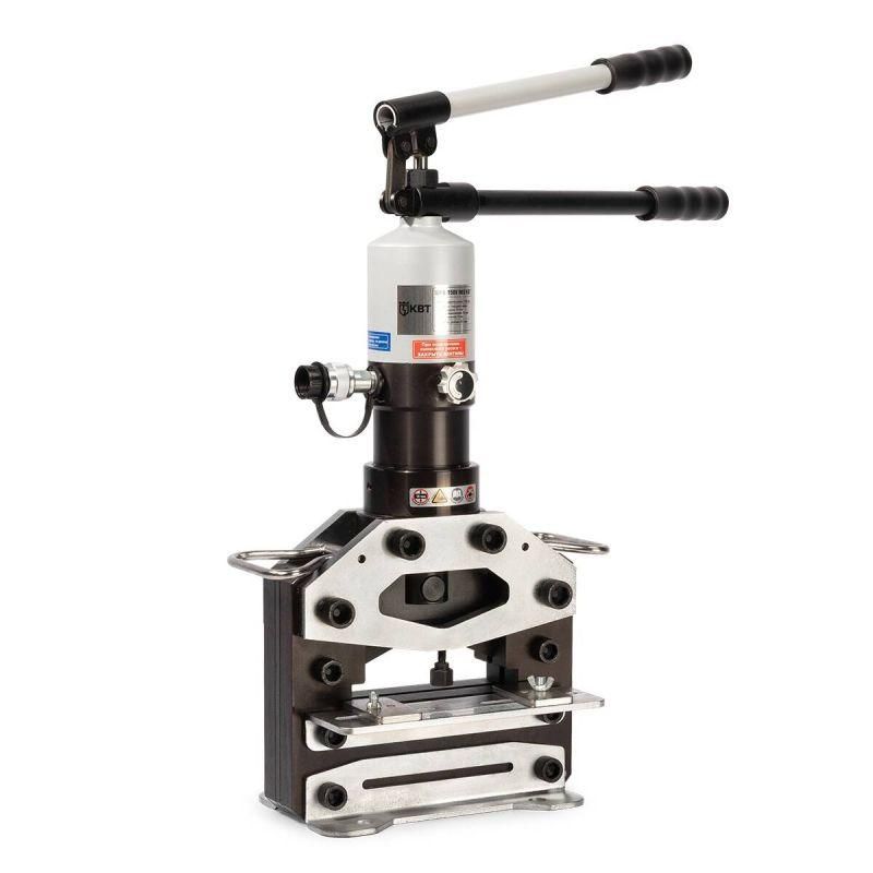 ШРА-150V не требует внешнего питания - работает от ручного гидравлического насоса. Для постоянного использования рекомендуется закрепить пресс на прочном рабочем столе с помощью болтовых отверстий, предусмотренных в основании. Инструмент совместим со всеми стандартными ручными гидравлическими насосами, используемыми в электромонтаже. Нож сам центрируется относительно шины, что исключает необходимость предварительной разметки.