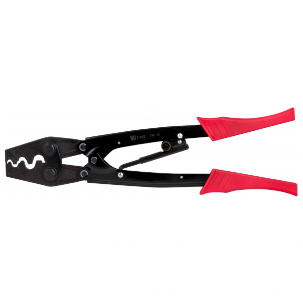 Пресс-клещи ПК-35 от EKF - ручной инструмент для надёжного обжима кабельных наконечников типа TMЛ сечением 2,5–35 мм2. Артикул pk-35-mas обеспечивает точный клиновидный обжим благодаря храповому механизму с автовозвратом, что делает его удобным для частых операций на объектах.