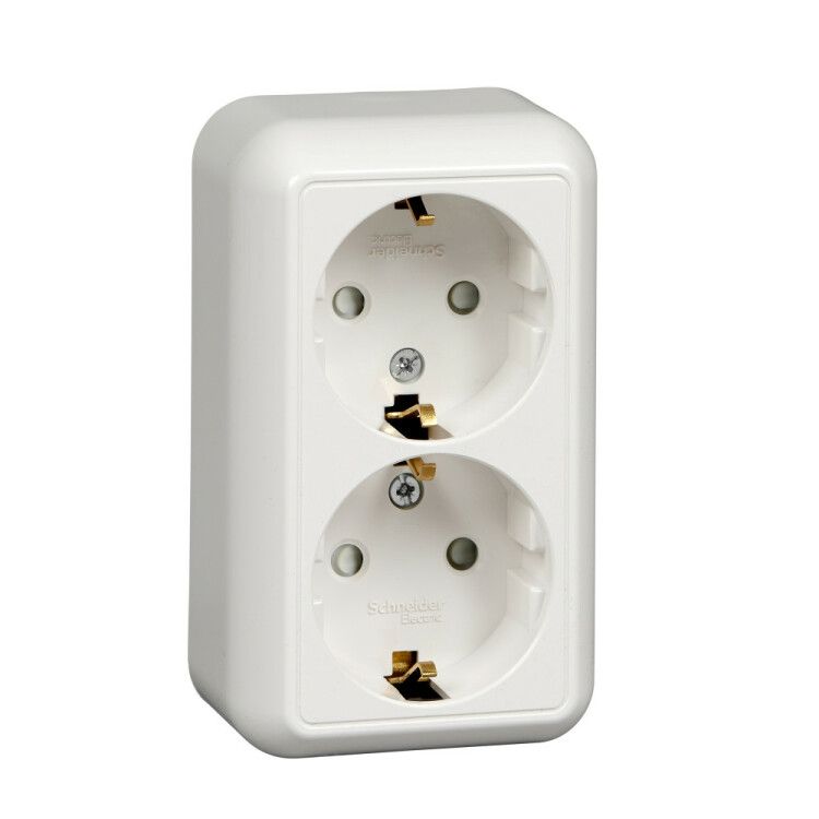 Розетка 2-м ОП Прима 16А 250В защ. шторки с заземл. изол. пласт. (опт. упак.) бел. SchE RA16-214I-B APC