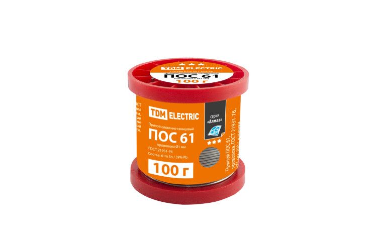 | Припой ПОС 61, проволока, ГОСТ 21931-76, Ø1 мм, 100 г, катушка, серия "Алмаз" | SQ1025-0313 | TDM | 02.03.2026 | Под заказ | 804,17 ₽ | шт. | от 30 дней |