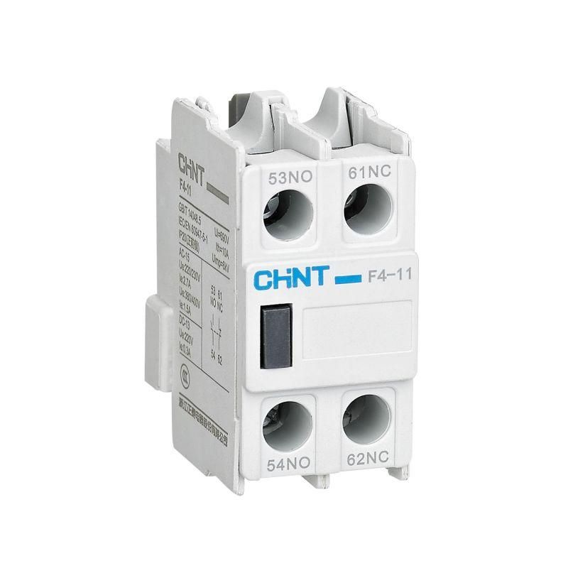 Приставка дополнительных контактов F4-20 к контактору NC1, NC2, NC8 (R) от CHINT расширяет функциональность контакторов за счёт двух дополнительных нормально открытых контактов. Устройство предназначено для управления цепями сигнализации, блокировок и вспомогательной автоматики в системах с этими моделями контакторов.
