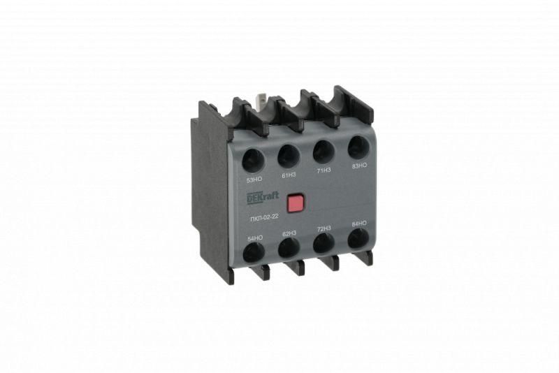 Приставка контактная лицевой установки 3 нормально открытых + 1 нормально закрытый контакт ПКЛ-02 от DEKraft - устройство для расширения числа вспомогательных контактов у контакторов серии КМ-102 и совместимых моделей других производителей. Устанавливается на лицевую сторону, обеспечивает надёжное коммутирование цепей управления с током до 10 А.