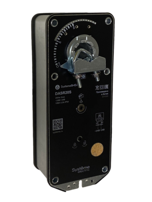 Привод воздушной заслонки Systeme Electric dasr20s предназначен для точного и надёжного открывания/закрывания воздуховодов в системах вентиляции и кондиционирования. Благодаря пружинному возврату и работе от 24 В переменного или постоянного тока, он обеспечивает безопасную аварийную блокировку даже при потере питания.