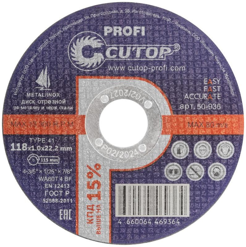 Профессиональный диск отрезной по металлу и нержавеющей стали Profi Т41-118x1,0x22,2 мм - 50-936 РОС