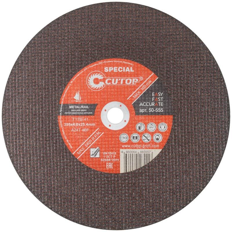 Профессиональный специальный диск отрезной по металлу для резки железнодорожных рельсов Т41-355 х 4.0 25.4 мм Cutop Special - 50-555 РОС
