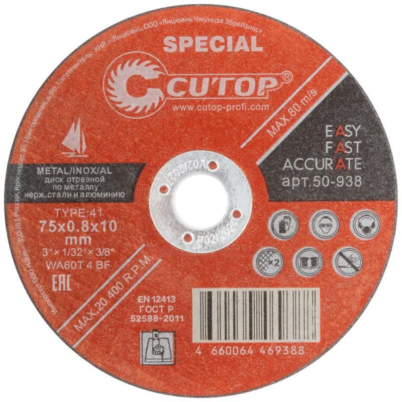 | Профессиональный специальный диск отрезной по металлу, нержавеющей стали и алюминию Special, Т41-75x0,8x10,0 мм - 50-938 | 14.03.2026 | 1329 шт. | 65,45 ₽ | шт. | от 30 дней |