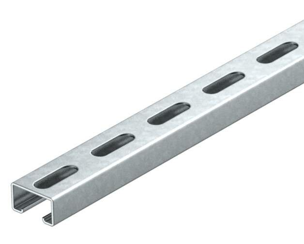 Монтажная рейка профильная 2000x40x22,5 мм горизонтальная оцинкованная сталь 2 мм от OBO BETTERMANN - это прочный несущий элемент для крепления оборудования на стенках шкафов, панелях и других металлических конструкциях. Артикул MS4022P2000FT обеспечивает надежную фиксацию за счет C-образного профиля и задней перфорации, подходящей для болтовых соединений.