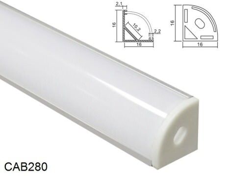 Профиль алюминиевый для светодиодной ленты угловой круглый с заглушками, серебро CAB280 2 м,(в комплекте заглушки, 4 крепежа) | 10299 FERON