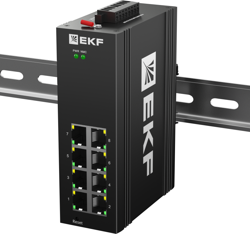 Коммутатор управляемый промышленный уровня L2 ML2-8GTP от EKF - это надёжное решение для построения устойчивых промышленных сетей Gigabit Ethernet с питанием устройств по технологии PoE. Артикул tsx-ml2-8gtp рассчитан на монтаж на DIN-рейку и подходит для условий производства, транспорта и энергетики.