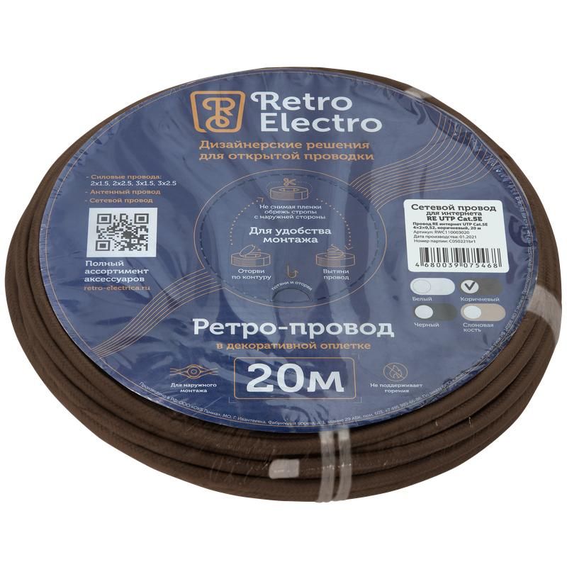 | Провод ретро интернет UTP кат.5E 4х2х0.52 корич. (уп.20м) RetroElectro 2254742 | 13.03.2026 | 4 уп. 20 м. | 2 156,33 ₽ | уп. 20 м. | от 11 дней |