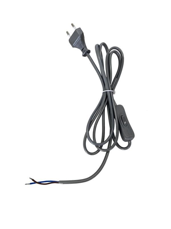 Провод с евроштекером, выключателем, 2м, 2х0.5мм , 2А, серебро, 28573 1, duwi