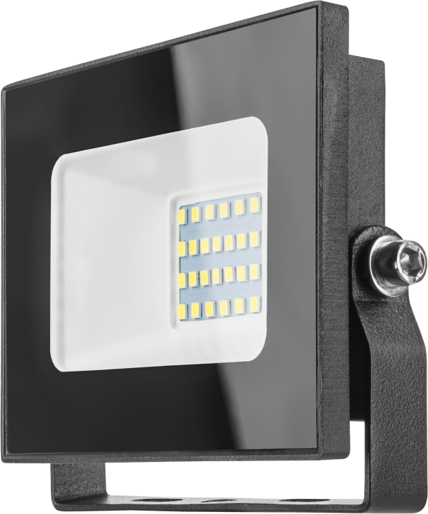 Прожектор светодиодный 30 Вт 230 В алюминий черный опаловый рассеиватель IP65 имеет поверхностный способ монтажа с помощью встроенной металлической скобы. Установка выполняется на плоскую поверхность - стену, потолок, столб. Для подключения используются два провода: фаза и ноль. Обязательно подключение защитного заземления через болт на корпусе. Диаметр отверстий под крепеж - стандартные 5–6 мм. Кабельный ввод не предусмотрен - провод заводится вручную, рекомендуется использовать термоусадочные трубки или герметичные вводы для наружной установки.